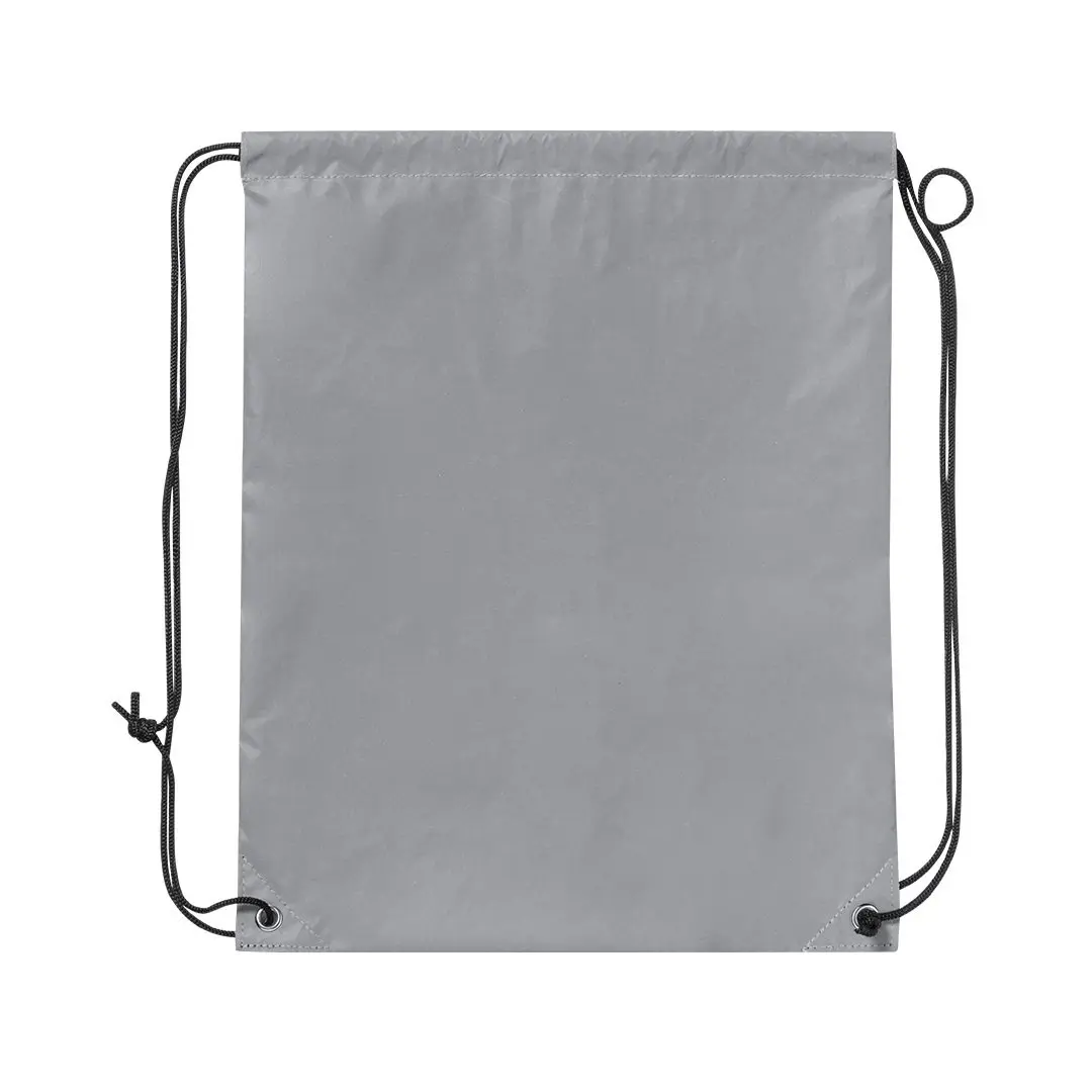 Mäkký 210T polyesterový batoh so sťahovacou šnúrkou. Vyrobené z tkaniny s vysokou schopnosťou intenzívne odrážať svetlo, vďaka miliónom reflexných pigmentov a na princípe spätného odrazu svetla, vlastnosti nočnej viditeľnosti, ktorá pozostáva z lomu svetla smerom k zdroju toho istého. S čiernymi samozatváracími lankami a kovovými krúžkami. Odolnosť do 7 kg a vodeodolnosť.