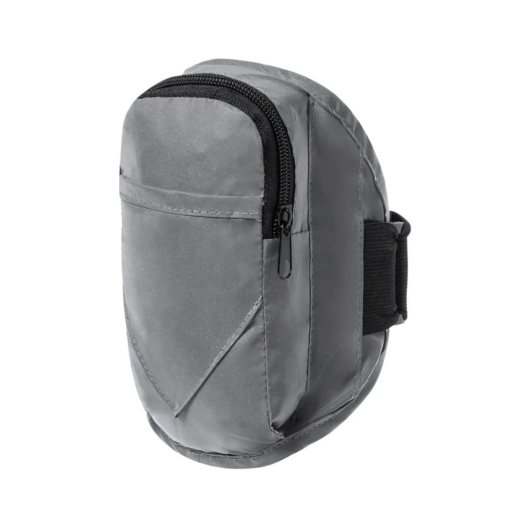 Športový náramok z 210T polyesteru, vyrobený z tkaniny s vysokou schopnosťou intenzívne odrážať svetlo, vďaka miliónom reflexných pigmentov a založený na princípe spätného odrazu svetla, vlastnosti nočnej viditeľnosti, ktorá spočíva v lomu svetla na jeho zdroj. Hlavné vrecko so zapínaním na zips a predné vrecko so zapínaním na suchý zips. S nastaviteľným elastickým a vode odolným popruhom.