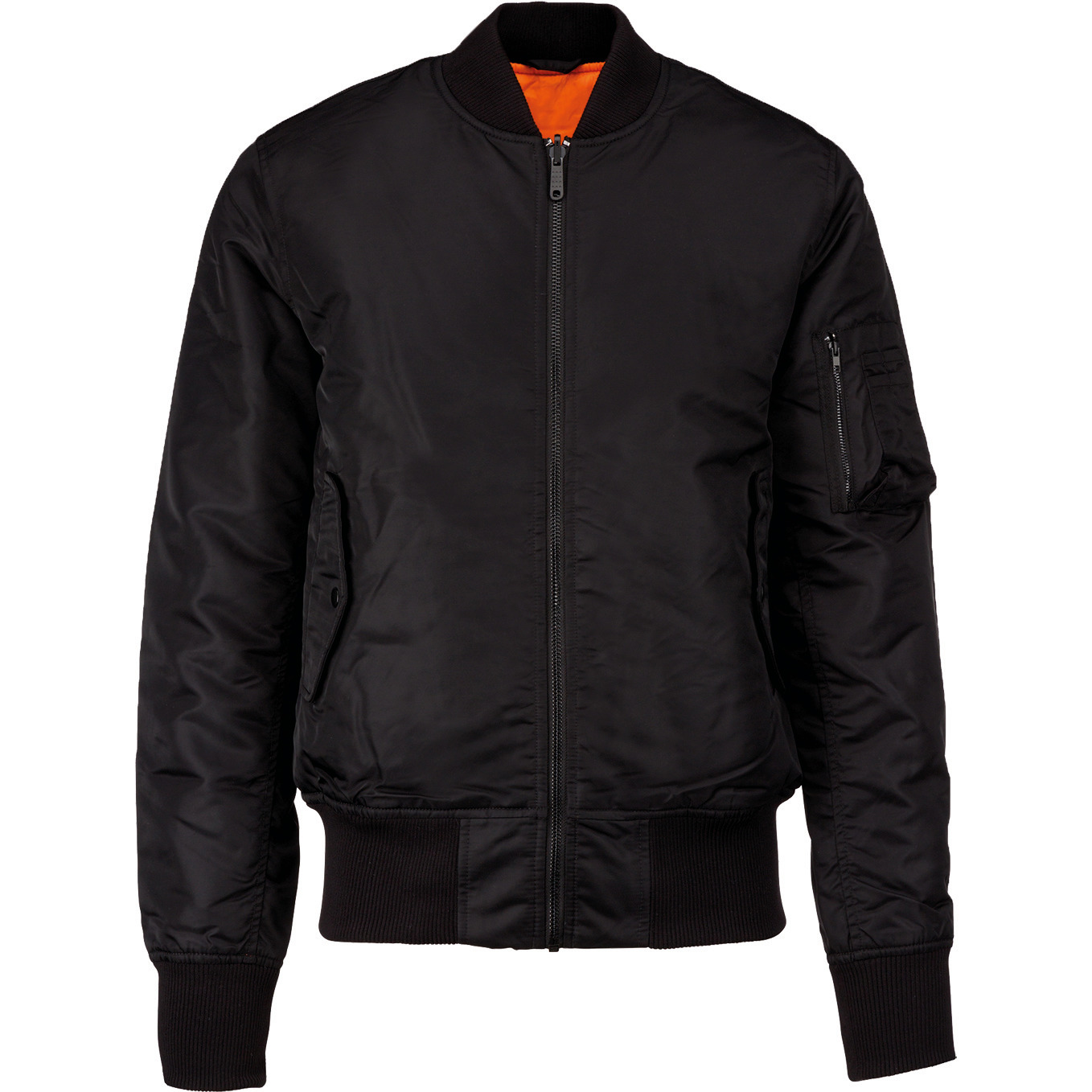 100% polyamid. Vnútorná výplň 100% polyester. Kontrastná podšívka zo 100% polyesterového taftu. Zapínanie na zips s obojstranným jazdcom. Dve vrecká vpredu s lemom, chlopňou a patentným gombíkom. Vonkajšie vrecko na zips s otvorom na pero na ľavom rukáve. 2x2 rebrá na krku, manžetách a spodnej časti odevu. Obojstranná strana (vnútorná - oranžová farba): dve bočné vrecká s lemom a patentným gombíkom. Zips v spodnej časti odevu pre prispôsobenie. Žiadny štítok značky na krku, len odnímateľný samolepiaci štítok veľkosti. Priemerná hmotnosť vo veľkosti L: 917 g. Klasický bomber strih. Všestranné a obojstranné. Hrubé a mimoriadne pohodlné.