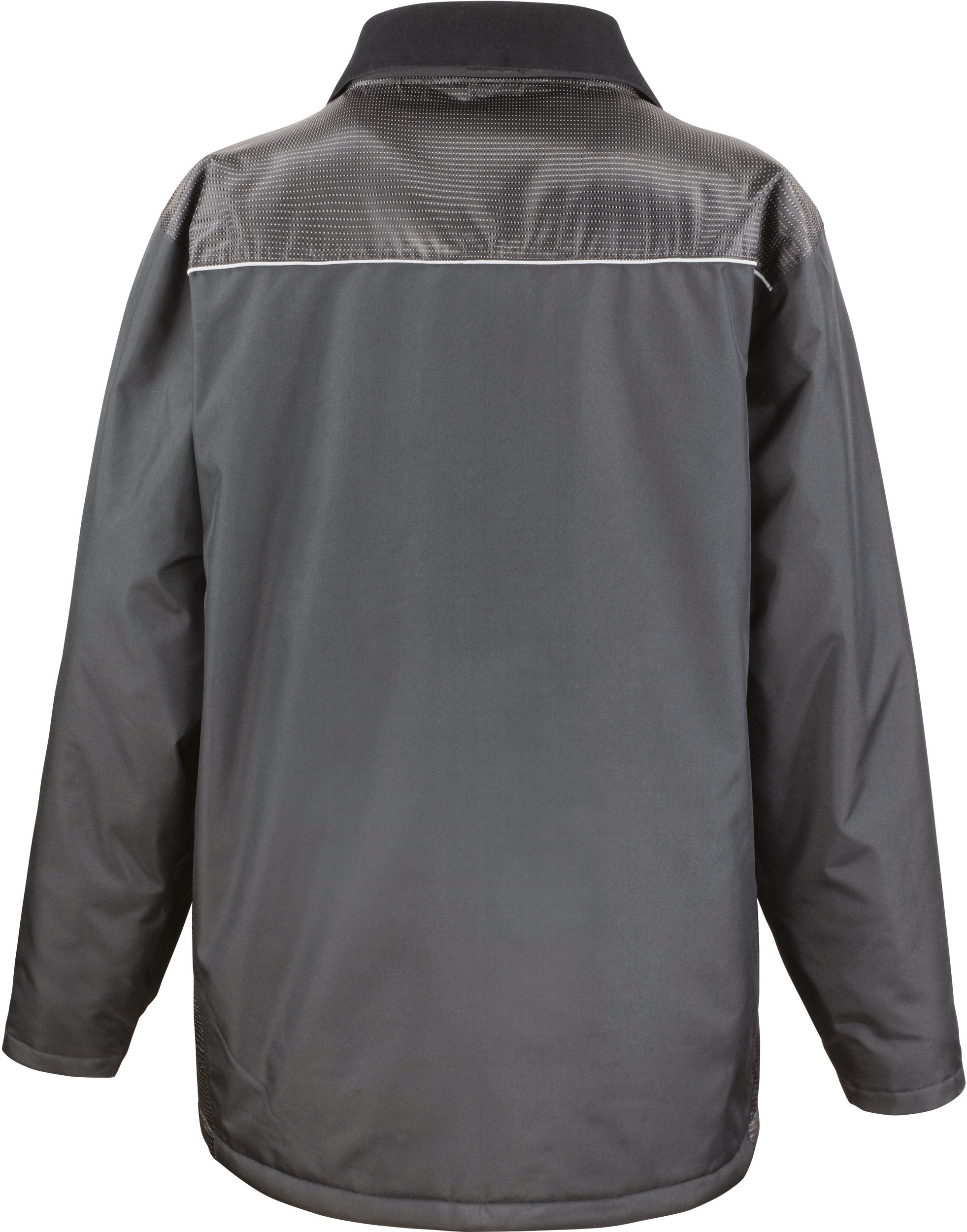 Vonkajšia časť: 100% 300D Oxford polyester s PVC záterom. Podšívka: 100% polyester 210T taft. Zateplenie: výplň 100% polyester. Vodotesné do 2000 mm. Vetrovka. Diamantovo prešívaná podšívka. Zapínanie na obojsmerný zips vpredu s chlopňou so suchým zipsom a patentnými gombíkmi. Pletený podšitý golier. Nastaviteľná a odnímateľná kapucňa so zipsom. Kontrastné sedlo z látky Dobby. Reflexný lem. Viac vreciek: predné vrecká s légou a zapínaním na suchý zips, bočné vrecká na udržanie rúk v teple, vnútorné vrecko na hrudi. Lem so sťahovacou šnúrkou. Nastaviteľné rebrované manžety so zapínaním na suchý zips. Odnímateľné ťaháčiky na všetkých zipsových uzáveroch (obsahuje 4 farby ťahákov). Široký strih, ktorý poskytuje dobrú pohyblivosť. Odolnosť voči nepriaznivým poveternostným podmienkam, optimálna ochrana. Izolačný plášť s tepelnou údržbou.