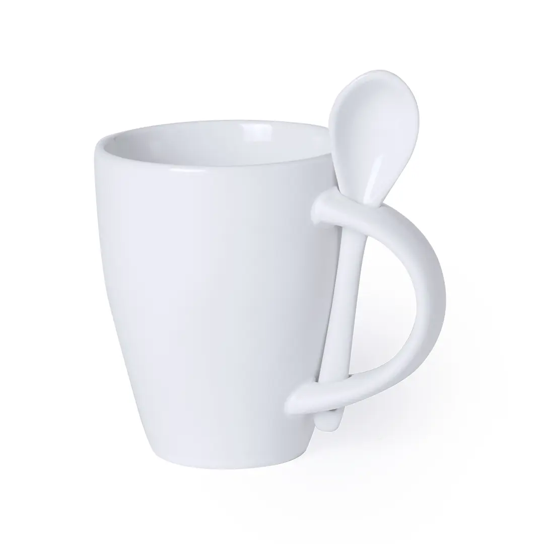 Keramický hrnček s objemom 300 ml v bielej farbe. So zodpovedajúcou keramickou lyžičkou integrovanou v rukoväti a dodávanou v samostatnej škatuľke. Hrnček Samay. Výrobok vyrobený z keramiky. (300 ml. Individuálna prezentácia) Keramický hrnček s objemom 300 ml v bielej farbe. So zodpovedajúcou keramickou lyžičkou integrovanou do rukoväte a dodávanou v samostatnej škatuľke. Dôverujte Muybuenaidea, lídrovi v merchandisingu už 15 rokov, a prekvapte svojich zákazníkov a zamestnancov akýmkoľvek propagačným darčekom z našej širokej ponuky produktov.