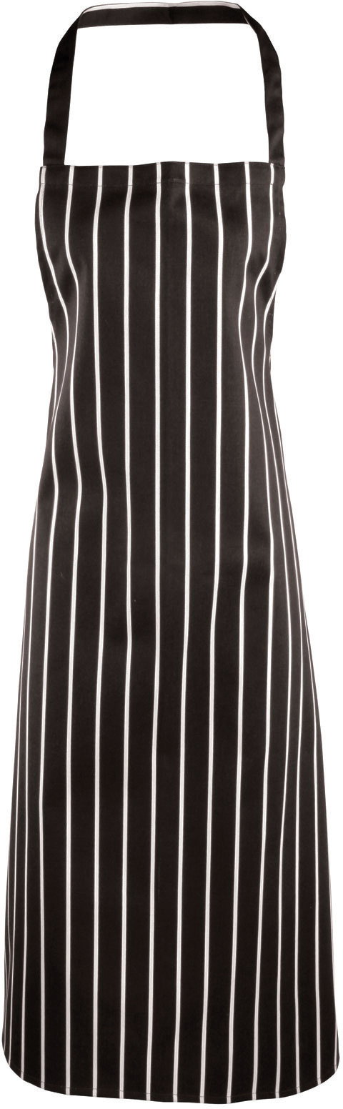 100% bavlna. Zástera so zvislými pruhmi v štýle "mäsiar" Šnúry z rovnakej látky ako zástera. Šírka: 72 cm. Dĺžka od pása: 71 cm. Celková dĺžka: 101 cm. Dĺžka čipky: 90 cm. Kvalitná tkanina s vyššou odolnosťou.
