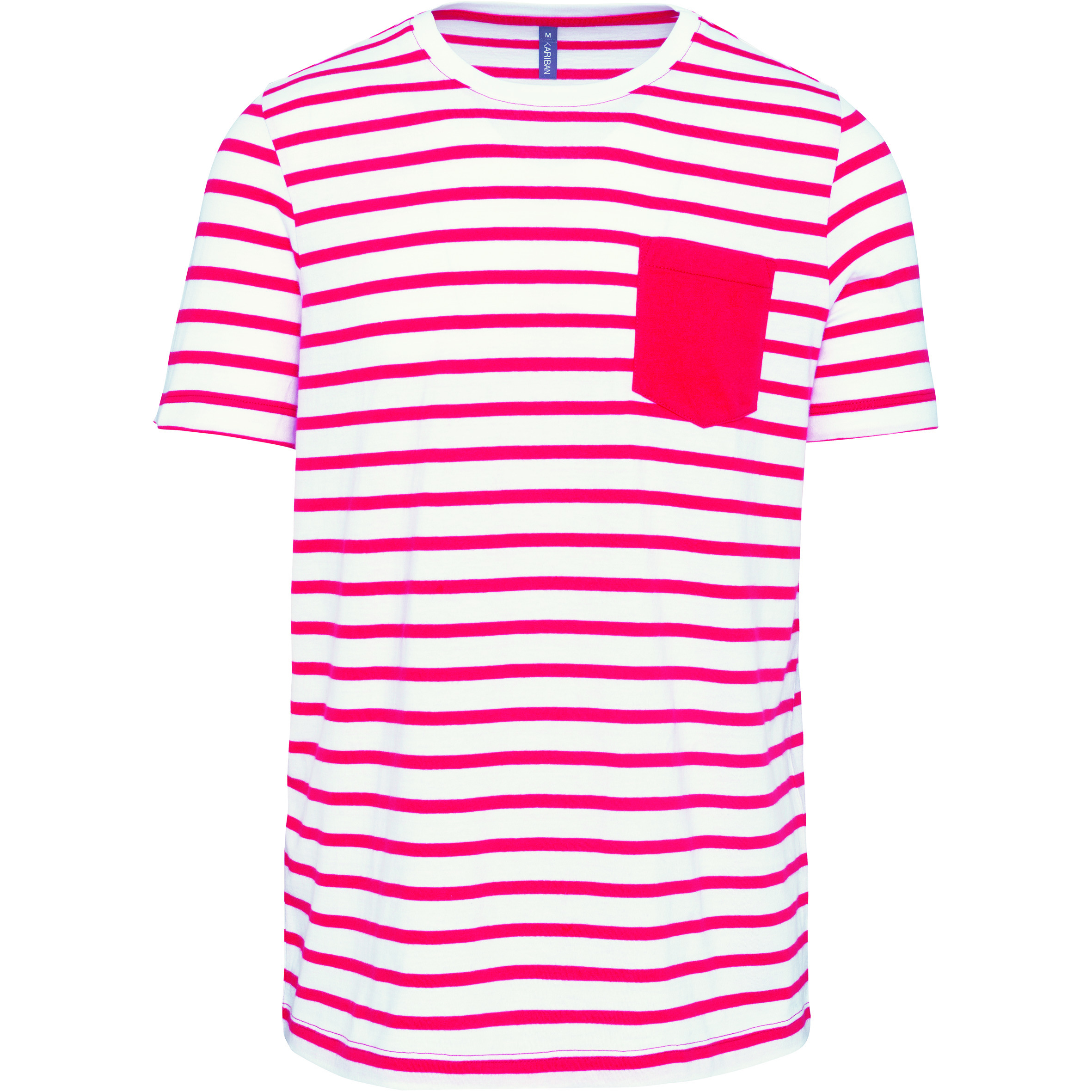 100% bavlna. Džersejový česaný bavlnený úplet. Jemný dotyk. Rebrovaný golier. Kontrastné vrecko na ľavej strane hrudi. Kontrastná páska na krku. Ukončené dvojitým prešívaním v spodnej časti rukávov a odevu. Certifikát ŠTANDARD 100 od OEKO-TEX® č. CQ 1007/7, IFTH. Nadčasový štýl námorníckych pruhov, teraz na tričku. Plynulý strih a kontrastné vrecko pre ležérny vzhľad. Džersejová pletená konštrukcia zo 100% česanej bavlny.