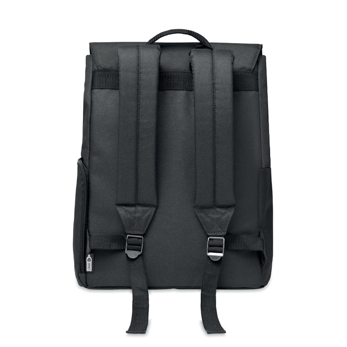 Mramorovaný 600D RPET batoh pre 15-palcový notebook s magnetickým patentným tlačidlom. Polstrovaná priehradka na notebook, predné vrecká na zips a 2 bočné vrecká.