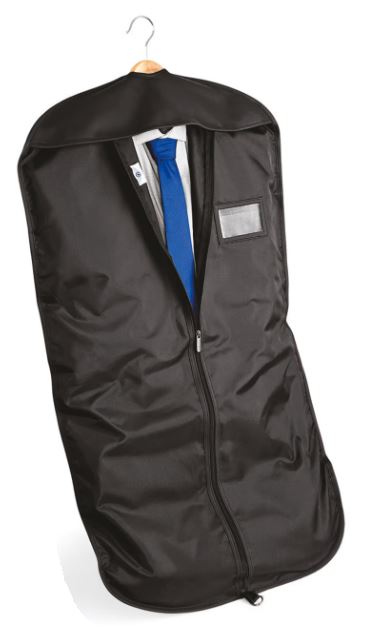 210D polyester. Skladá sa a visí pomocou spony. Priehľadné vrecko na identifikáciu. Zapínanie na zips v celom rozsahu. Ľahká a odolná tkanina. Umožňuje prepravu obleku alebo troch košieľ.