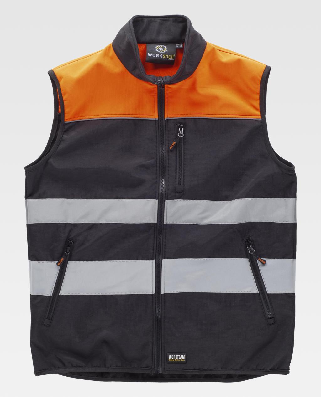 Pracovná vesta s Ripstop tkaninou v kombinácii s strmeňmi a reflexnými páskami. Vysoký krk a zapínanie na nylonový zips. Náprsná taška a dve vnútorné strany s nylonovými zipsami. Plastónové vrecko so zapínaním na zips vo vnútri. Dve reflexné pásky rôznych veľkostí na hrudi a chrbte. Reflexné lemovanie. Orezané zaujatosťou. Vetruvzdorná, vodoodpudivá a roztrhnutiu odolná tkanina s priedušnou a izolačnou vnútornou membránou a vysokou tepelnou kapacitou vo vnútri. Pracovná vesta s Ripstop tkaninou v kombinácii s strmeňmi a reflexnými páskami. Vysoký krk a zapínanie na nylonový zips. Náprsná taška a dve vnútorné strany s nylonovými zipsami. Plastónové vrecko so zapínaním na zips vo vnútri. Dve reflexné pásky rôznych veľkostí na hrudi a chrbte. Reflexné lemovanie. Orezané zaujatosťou. Vetruvzdorná, vodoodpudivá a roztrhnutiu odolná tkanina s priedušnou a izolačnou vnútornou membránou a vysokou tepelnou kapacitou vo vnútri.
