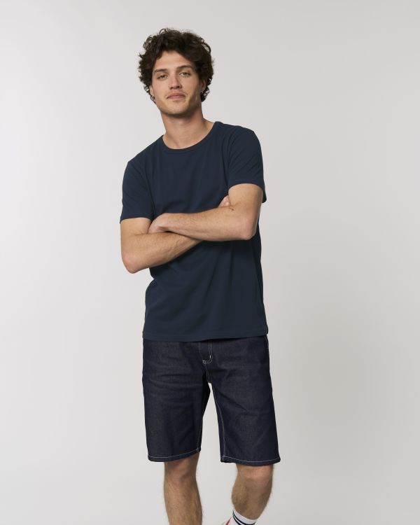 Ľahké tričko pre neho. Priliehavý strih, okrúhly výstrih, krátky rukáv, jednoduchý džersejový úplet. Priliehavý rukáv