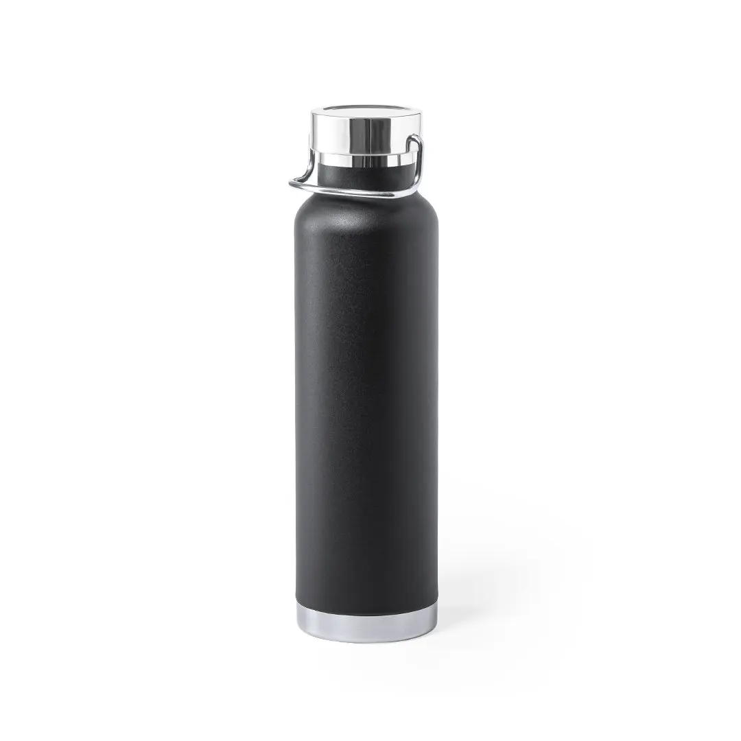 Tepelná fľaša z nehrdzavejúcej ocele s dvojitou vrstvou a vákuovou medenou izoláciou. Umožňuje vám udržať teplo a chlad dlhšiu dobu, dosahujúc 12 a 48 hodín. Kapacita 650 ml a dostupné v širokej škále metalických farieb. Dodávané v atraktívnom dizajnovom boxe.