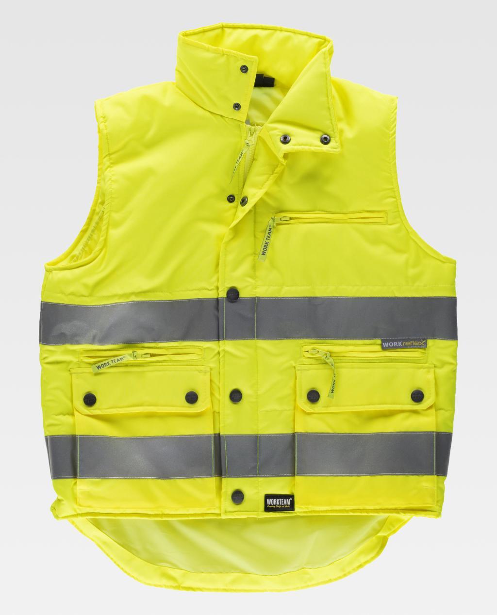 Vysoko viditeľná polstrovaná vesta z látky Oxford s reflexnými páskami. Stojačikový golier a zapínanie na nylonový zips ukryté chlopňou na háčiky. Náprsná taška a dve vnútorné strany so zapínaním na zips. Dve tašky s mechom a portfólio s držiakmi na bokoch. Náprsná taška so zapínaním na suchý zips vo vnútri. Dva reflexné pruhy na hrudi a chrbte. Nastaviteľné prieramky. Elastické na bokoch v páse. Vysoko viditeľná polstrovaná vesta z látky Oxford s reflexnými páskami. Stojačikový golier a zapínanie na nylonový zips ukryté chlopňou na háčiky. Náprsná taška a dve vnútorné strany so zapínaním na zips. Dve tašky s mechom a portfólio s držiakmi na bokoch. Náprsná taška so zapínaním na suchý zips vo vnútri. Dva reflexné pruhy na hrudi a chrbte. Nastaviteľné prieramky. Elastické na bokoch pása.
