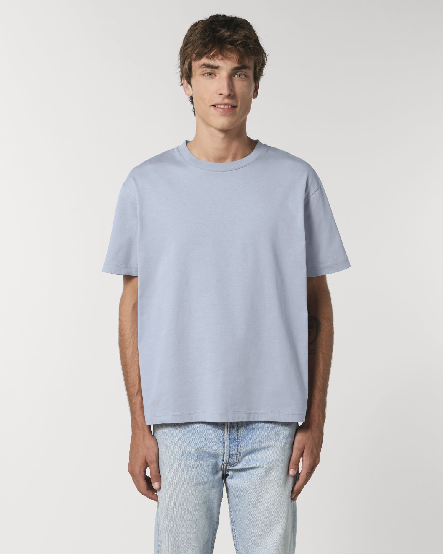 Voľné unisex tričko. Voľný strih, okrúhly výstrih, krátky rukáv, jednoduchý džersejový úplet. Priliehavý rukáv
