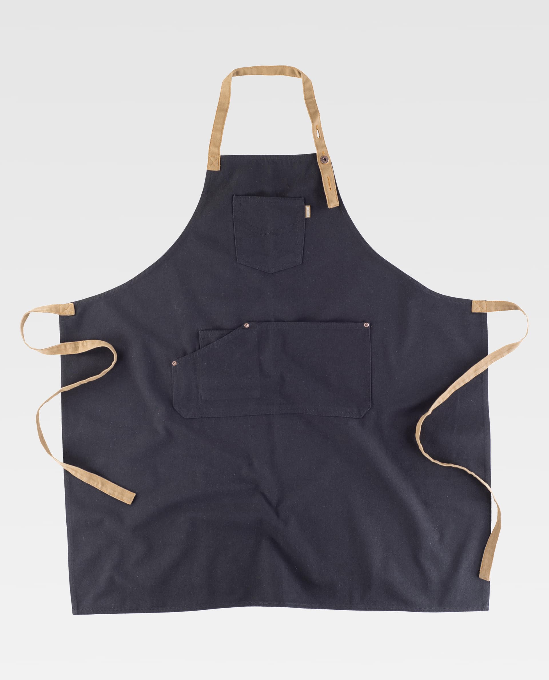 Zástera s náprsenkou z plátna. Náprsná taška s efektnými švami a asymetrickou centrálnou taškou s priehradkami a vnútorným vreckom na hodinky. Nastaviteľný popruh s kovovými gombíkmi na krku a stuhami na úpravu pásu. Moderný dizajn s medenými nitmi. Zástera s náprsenkou z plátna. Náprsná taška s efektnými švami a asymetrickou centrálnou taškou s priehradkami a vnútorným vreckom na hodinky. Nastaviteľný popruh s kovovými gombíkmi na krku a stuhami na úpravu pásu. Súčasný dizajn s medenými nitmi.